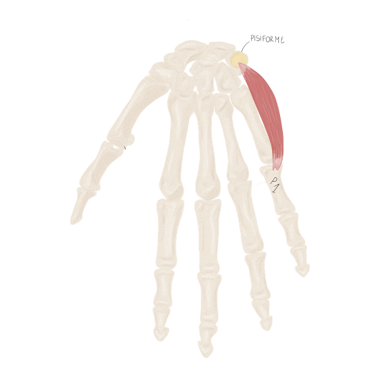 Pole inférieure du pisiforme, rétinaculum des fléchisseurs