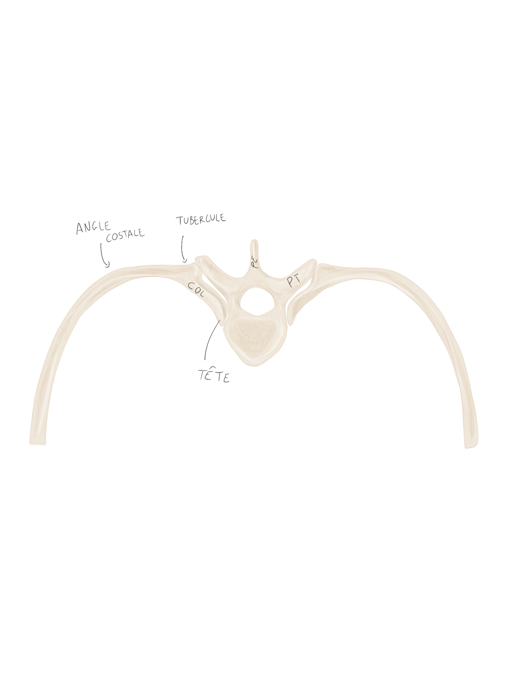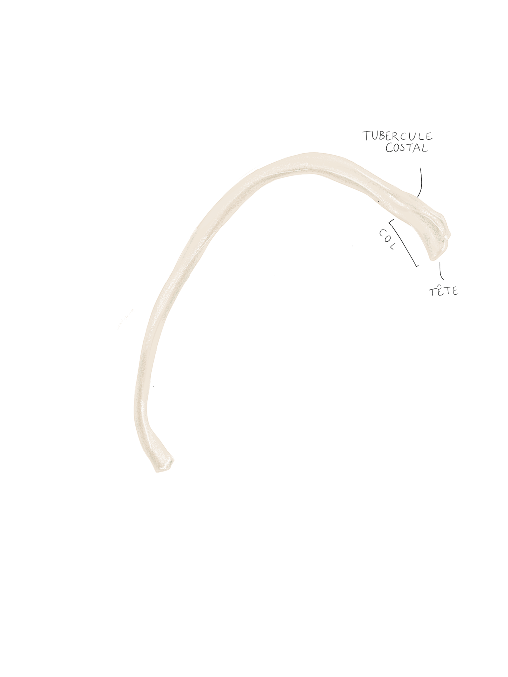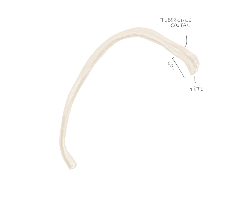 Le col : de la côte qui unit la tête au corps de la côte, la jonction se situant au niveau du tubercule.