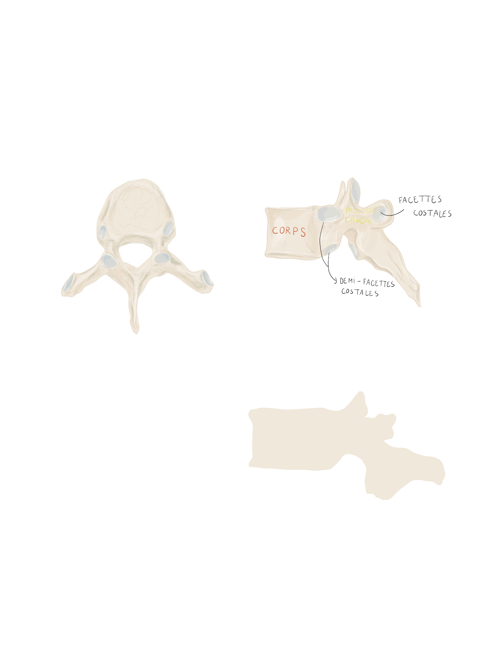 À partie de T4 → les corps vertébraux deviennent plus volumineux, pour s'adapter à l'accroissement progressif du poids du corps