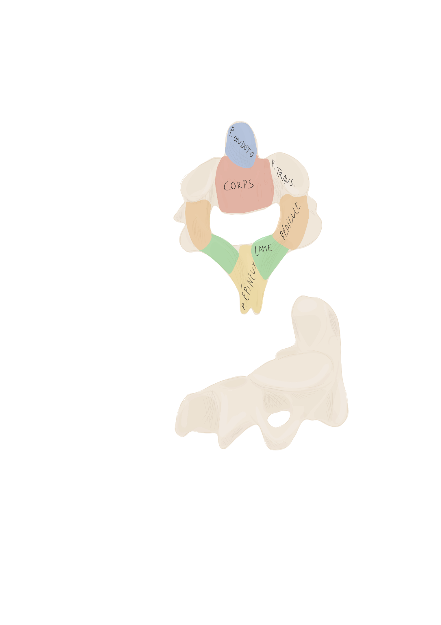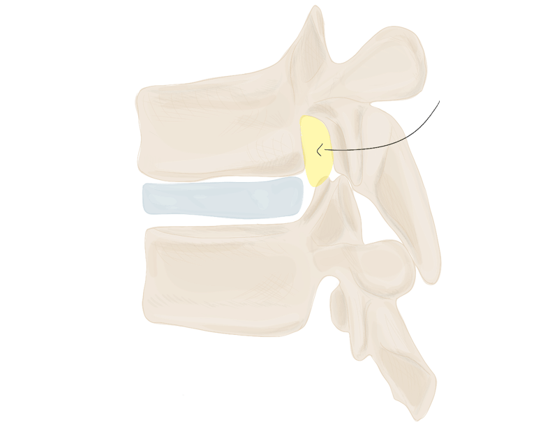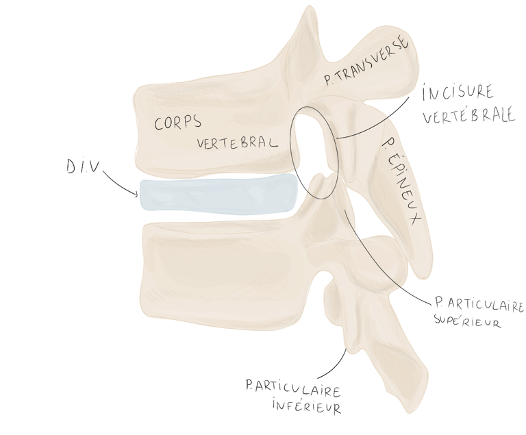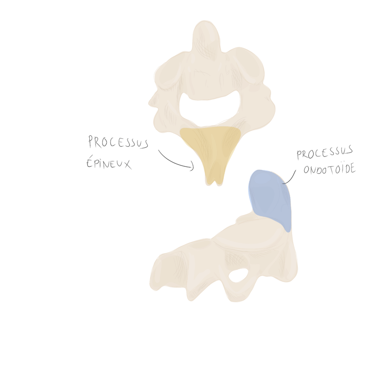 et se projette vers l'arrière en empiétant sur la vertèbre sous-jacente