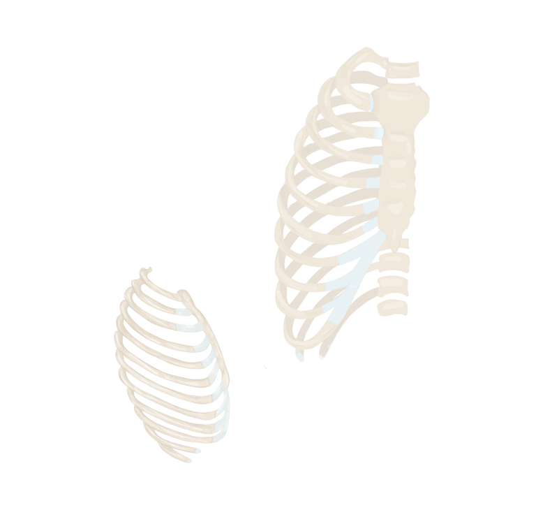 12 paires de côtes et de cartilages costaux