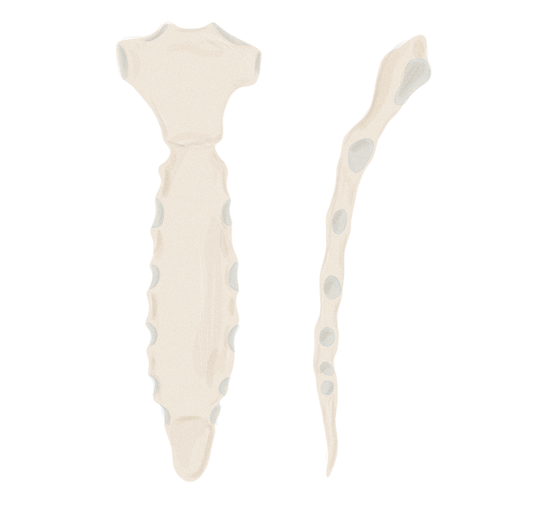5 sacrales : fusionnées pour former le sacrum