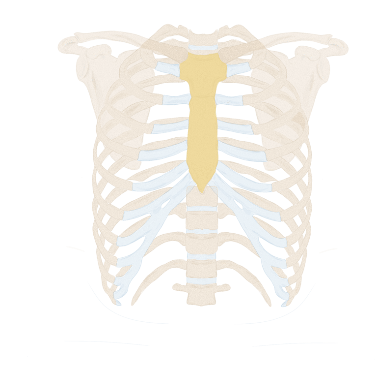 La face antérieure presque plane du sternum est marquée chez l’adulte par trois crêtes transversales irrégulières qui représentent les lignes de fusion (synostoses) entre quatre sternèbres (segment primitif du tissu) initialement séparées.