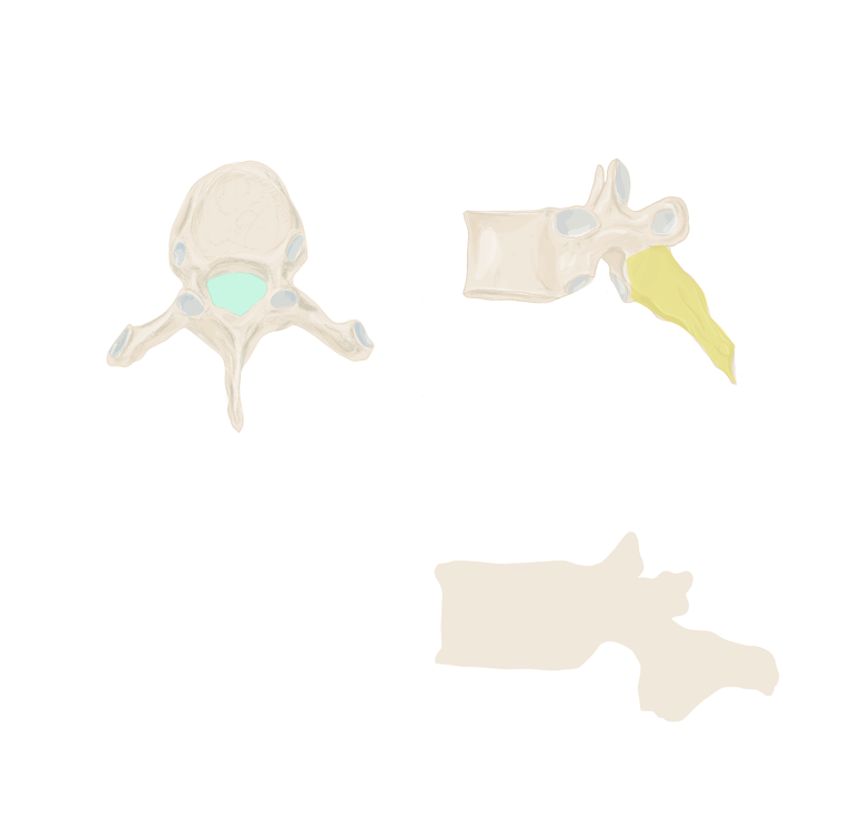 l'empilement de ces foramens forme le canal vertébral/ rachidien : qui renferme la moelle spinale, les méninges, les racines des nerfs spinaux.