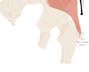 face interne du grand trochanter.