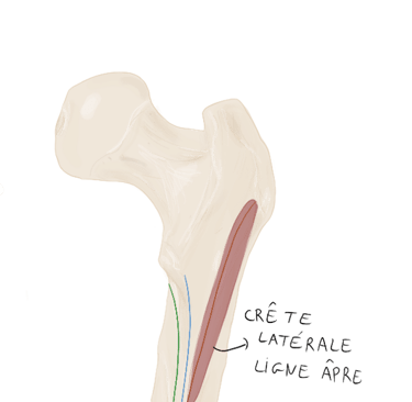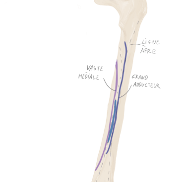 Le tractus ilio-tibial continue sa descente dans la cuisse et se termine au niveau du tubercule de Gerdy