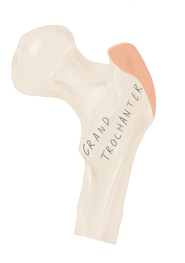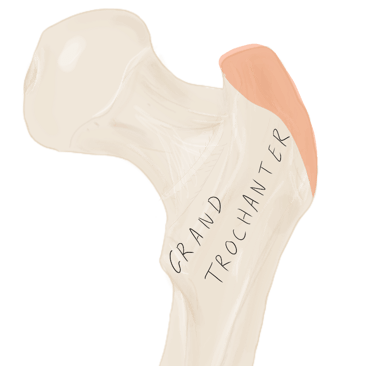Face latérale du grand trochanter.