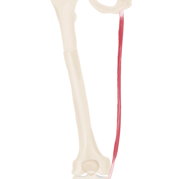 C’est un muscle triangulaire à base supérieure. Une partie de ce muscle va être recouverte par la muscle moyen fessier.