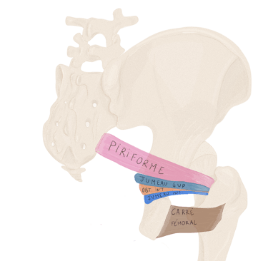 Profond : en haut → le petit fessier, en bas : les pelvis trochantériens