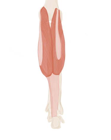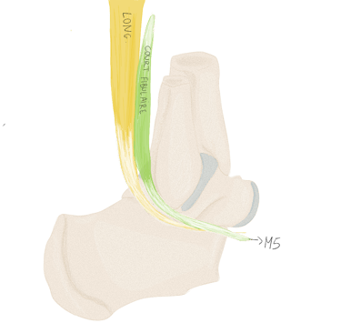 Les 2 bandelettes se réunissent à la face dorsale du long fléchisseur des orteils pour se terminer à la face inférieure de P2.