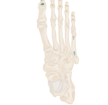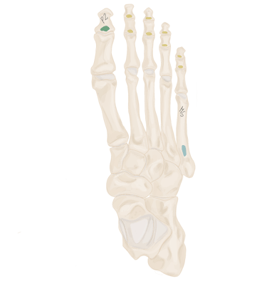 Sésamoïde médial et P1 de l’hallux, base, face média
