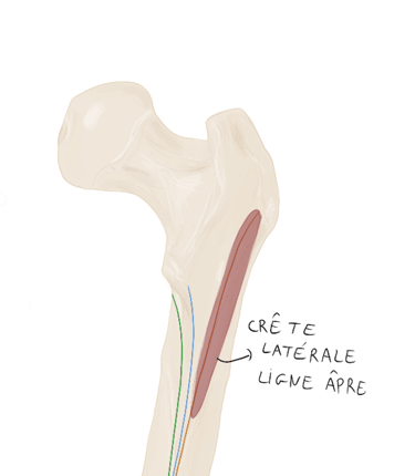 Bord antérieur du tractus ilio-tibial.