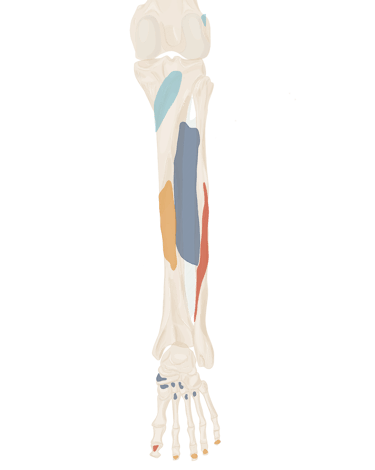 chef médial : crête médiale de la face inférieure du calcanéum + partie inférieure de la face médiale du calcanéum.