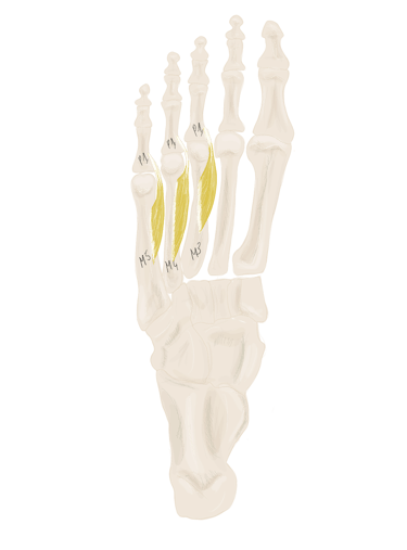 Ce sont des muscles courts au nombre de 4 et situés dans les 4 espaces intermétatarsiens.