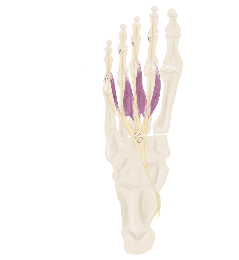 Ce sont des fléchisseurs de P1, Adducteur des orteils 3 à 5 (ils rapprochent ces orteils.