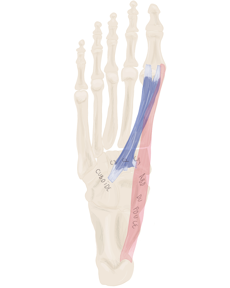 Les 2 faisceaux se dirigent vers l’articulation métatarso-phalangienne de l’hallux.