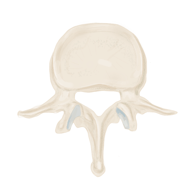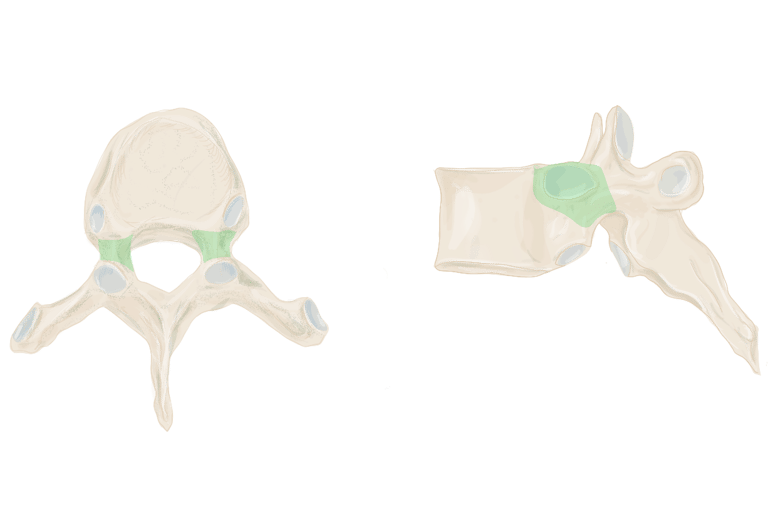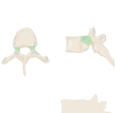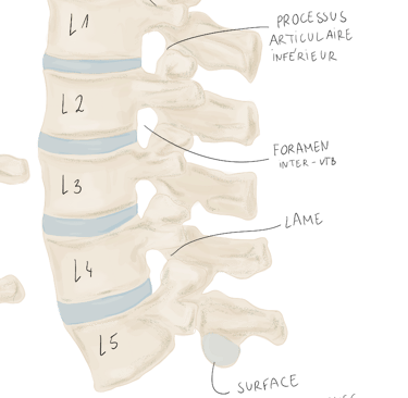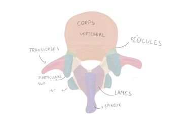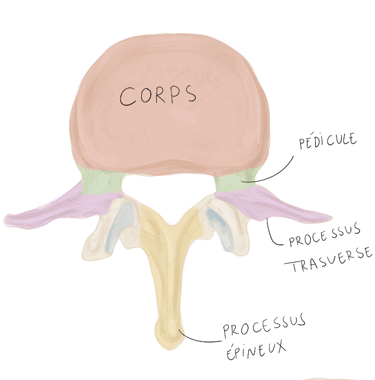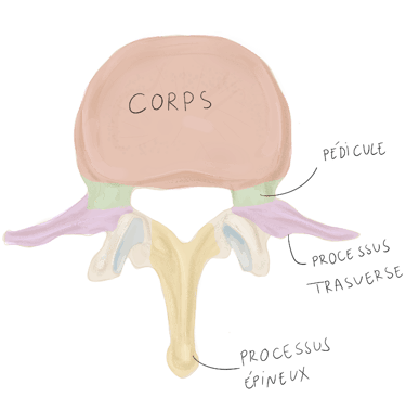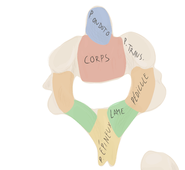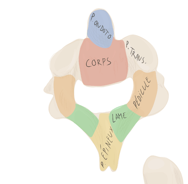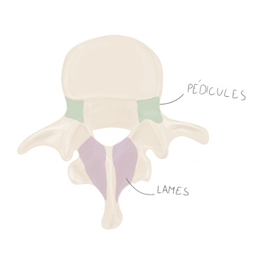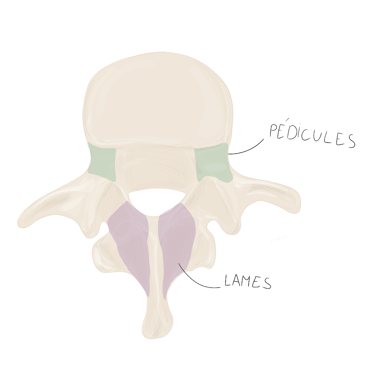 Pédicules vertébraux : droit et gauche, sont des processus vertébraux court et robustes qui unissent l'arc vertébral au corps vertébral