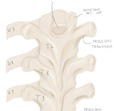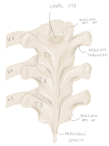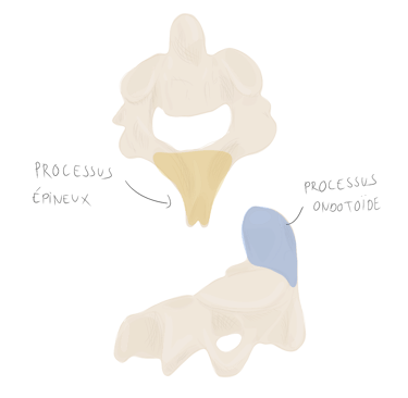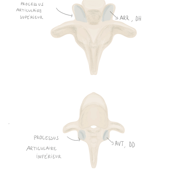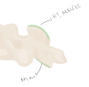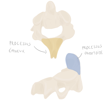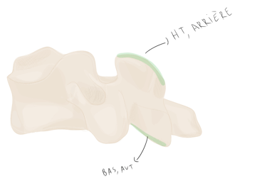 et se projette vers l'arrière en empiétant sur la vertèbre sous-jacente