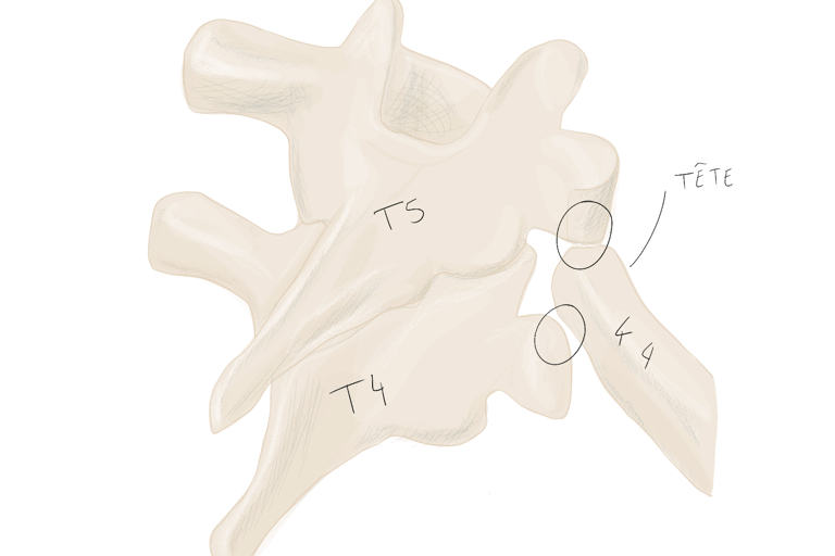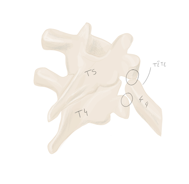 sa tête porte deux facettes articulaires pour les corps des vertèbres T1 et T2