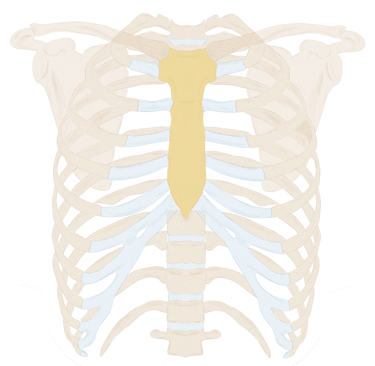 La face antérieure presque plane du sternum est marquée chez l’adulte par trois crêtes transversales irrégulières qui représentent les lignes de fusion (synostoses) entre quatre sternèbres (segment primitif du tissu) initialement séparées.