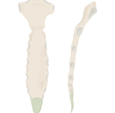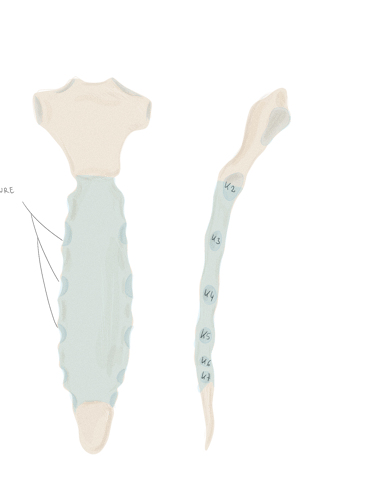 5 sacrales : fusionnées pour former le sacrum