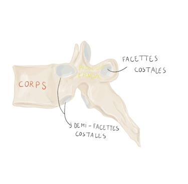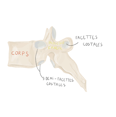 Les 11ᵉ et 12ᵉ côtes s'articulent avec le corps vertébral d'une seule vertèbre.