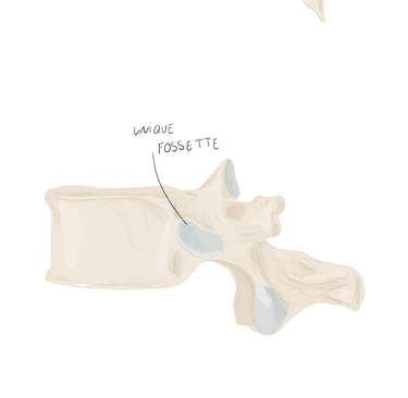 Comme la 1ʳᵉ côte, les 10ᵉ, 11ᵉ et 12ᵉ côtes n’ont qu’une seule facette articulaire sur leur tête.