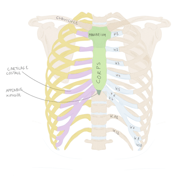 12 paires de côtes et de cartilages costaux