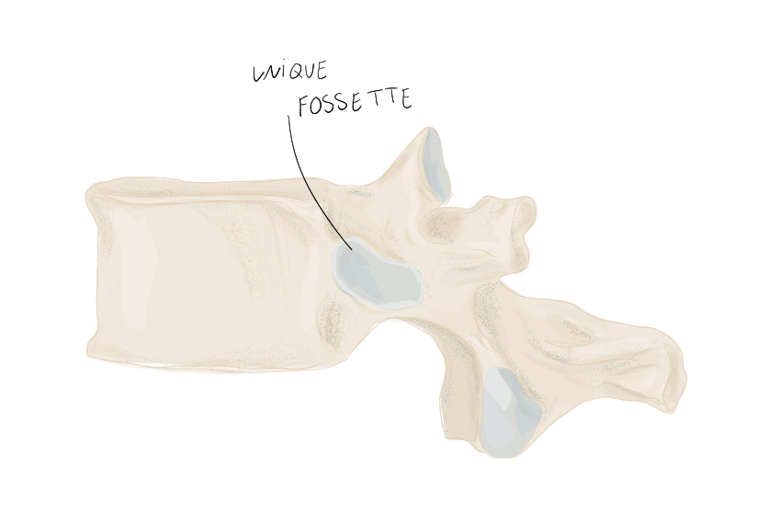 Il comprend une surface articulaire répondant au processus transverse de la vertèbre correspondante