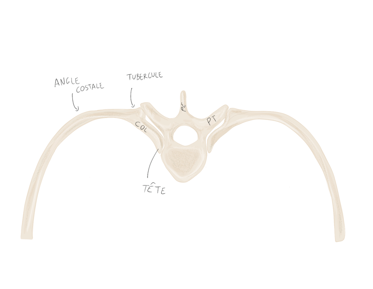Le col : de la côte qui unit la tête au corps de la côte, la jonction se situant au niveau du tubercule.